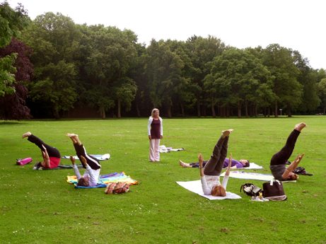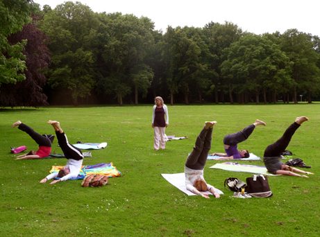 Wat hebben wij een heerlijke yogales meegemaakt, op het gras, direct in verbinding met onze moeder aarde. Één van de cursisten zei dat het de fijnste yogales van het hele seizoen was… Zelf kun je dit ook doen: lekker naar een park of grasveld gaan. Of naar het strand, de duinen.